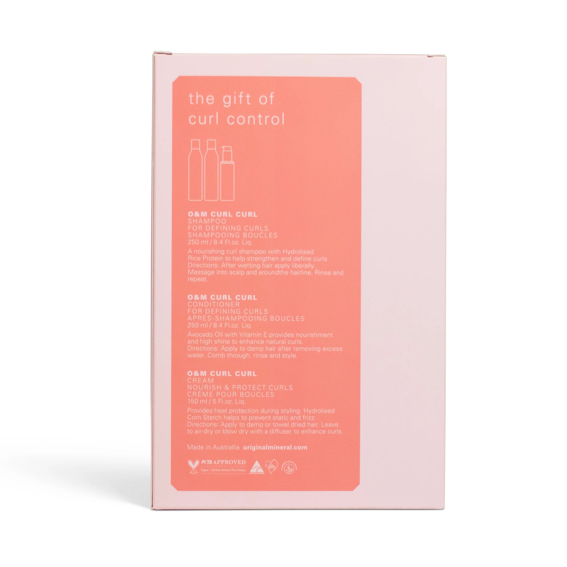 Give the gift of bouncy, defined curls with this premium trio from O&M. Crafted for wavy, curly and coily hair, this set includes: Curl Curl Shampoo (250 ml), Curl Curl Conditioner (250 ml) and Curl Curl Cream (150 ml).